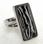 2009Ring van 999 zilver met transparante en gepigmenteerde UV hars en rubber inleg. Ringmaat 17 mm.