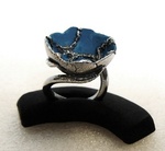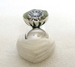 2010Ring van 999 zilver met zilveren bloem in gepigmenteerde UV hars. Buitenzijde opgezet met porseleinverf. Ringmaat 17 mm.