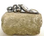 2009Liggende vrouw van gesinterd zilver (999). Los op stenen voet.